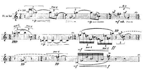 Since the early days of western notation, certain elements have become more and more explicitly governed by notation and at the same time, the complexity of the musical grammar of these ideas has also become more complex as composers have sought to achieve ever more original ideas. The first two examples, both from Stockhausen show one aspect of this problem, specifically here with the complexity of dynamic information making both the reading and performance of such material very difficult: