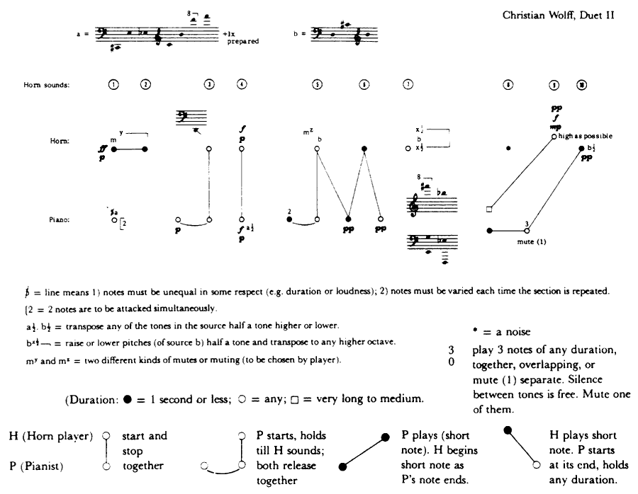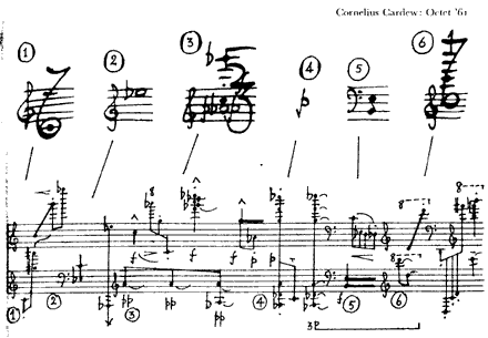 Examples taken from original scores and The New Music, Reginald Smith Brindle; Music Since the First World War, Arnold Whittall; Sounds and Signs, Cole, OUP 1974