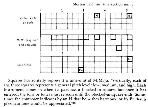 There follows a variety of examples of different forms of notation. See how well you think they communicate. Why have none of these, or, for that matter, any of the other examples of these really come into use? Or have they? Can you think of any examples which might have done? Why do you think these composers felt the need to experiment in these ways?