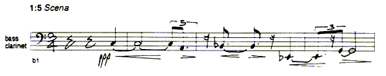 These terms are most obviously associated in twentieth-century British music with Harrison Birtwistle, and indeed, it was a (brief) study of his Verses for clarinet and piano that provided some of the initial impetus for the piece. What I found most appealing about the Birtwistle was not its sound, or its 'intellectual' shape, but the way in which the music was organised and constructed. In his analysis of the piece Michael Hall shows to a limited extent how material is generated from a repeated clarinet note and a delicate piano figure by moving first backwards and then forwards through the material in a succession of verses. During each verse new material is generated by this process, so the music proliferates. The piece is highly restrained in expression throughout.